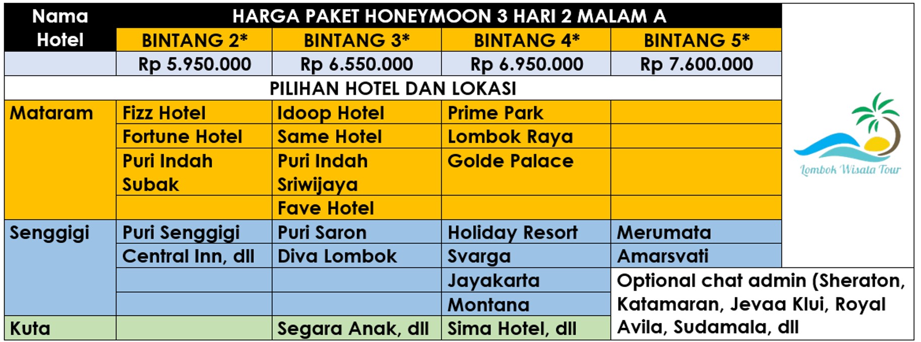 Paket Honeymoon Lombok 3H2M A